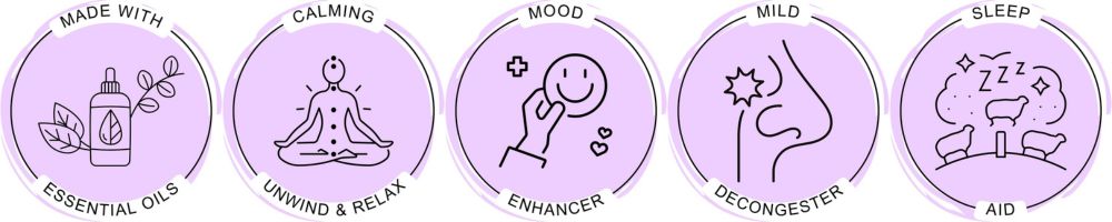Calms + Promotes Relaxation + Relieves Stress + Soothes Anxiety + Improves Sleep Quality + Eases Headaches