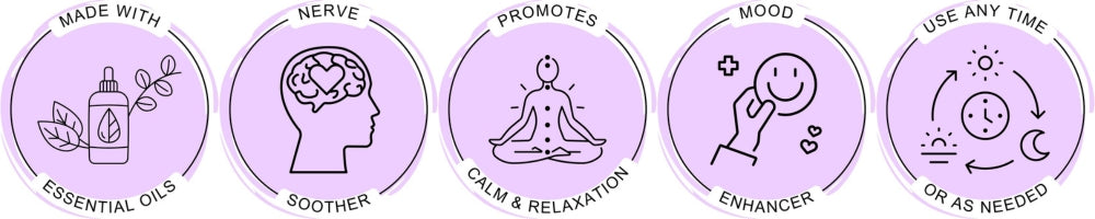Promotes Relaxation and Calm + Encourages Emotional Balance + Reduces Feelings of Stress and Anxiety + Uplifts Mood + Enhances Focus and Grounding