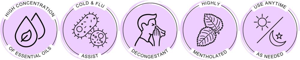 Clears Nasal Passages + Relieves Congestion + Soothes Sinus Discomfort + Invigorates The Senses + Helps Promote Easier Breathing + Refreshing
